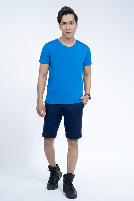 Áo thun nam Novelty cổ tim màu xanh da trời NATMMDNCTR190148N