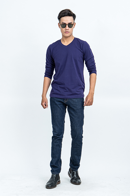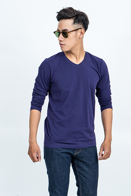Áo thun nam Novelty dài tay cổ tim màu tím NATMMDMCSR180710D