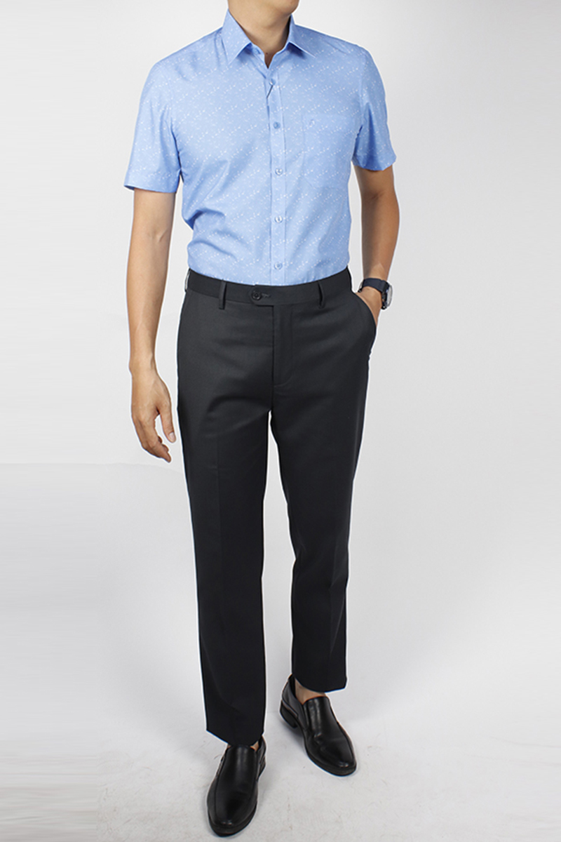 Áo sơ mi nam Regular fit ngắn tay xanh cổ vịt NSMMMTMBMR171424N
