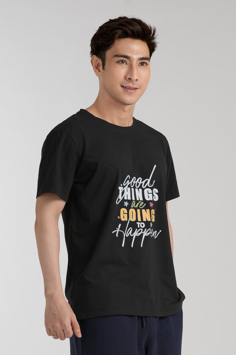 Áo thun nam cổ tròn Novelty Regular Fit  màu đen NATMMDMCTR240173N