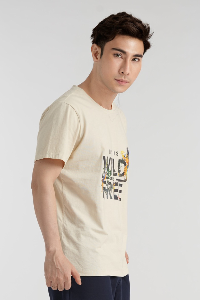 Áo thun nam cổ tròn Novelty Regular Fit Họa tiết màu vàng nhạt NATMMNMCTR240170N