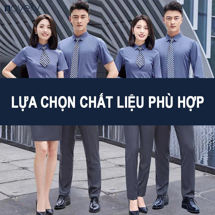 1. Lựa chọn chất liệu: Chất liệu là yếu tố quan trọng quyết định đến độ bền, sự thoải mái và tính thẩm mỹ của đồng phục. Do vậy doanh nghiệp nên lựa chọn chất liệu phù hợp với tính chất công việc, điều kiện thời tiết và ngân sách của mình. Một số loại chất liệu phổ biến được sử dụng để may đồng phục bao gồm: cotton, kate, kaki, thun,...