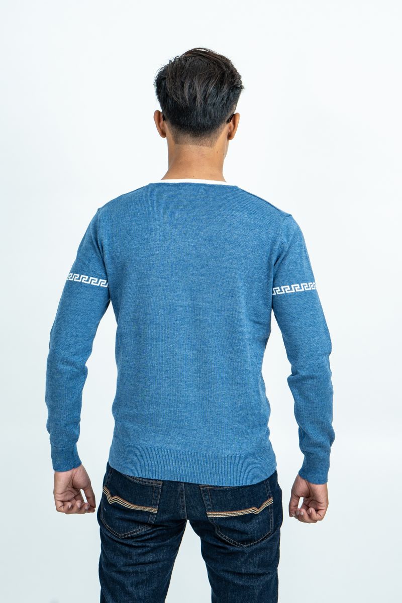 Áo len nam Novelty regular fit cổ tim phối họa tiết màu xanh dương NALMHTNACR180574I
