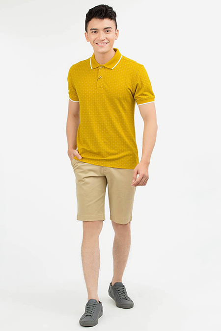Áo Polo nam Novelty Regular fit Bamboo  in họa tiết màu vàng NATMINMT3R180045N