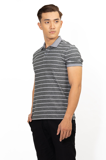 Áo Polo nam Novelty Regular fit sọc ngang màu xám đậm NATMSLMCSR191232N