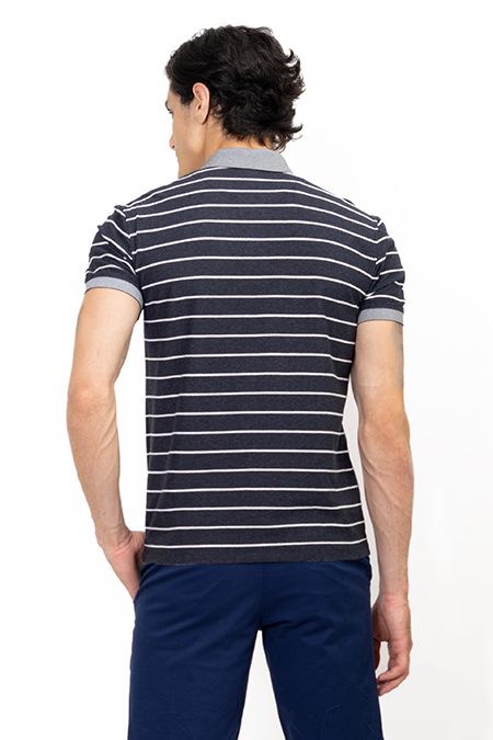 Áo Polo nam Novelty Regular fit sọc ngang màu xanh đen NATMSLMCSR191228N