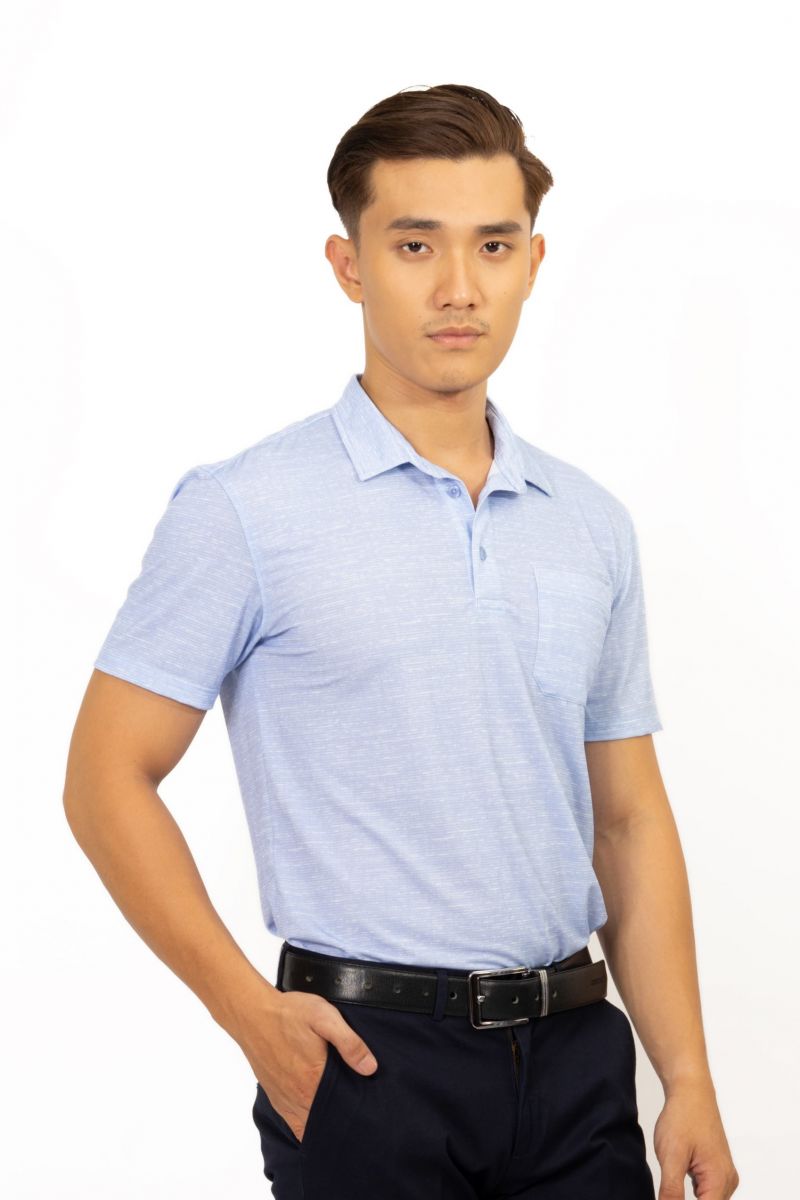 Áo Polo nam Novelty Regular fit cổ sơ mi hoa văn xanh dương nhạt NATMMNMCLR191114N