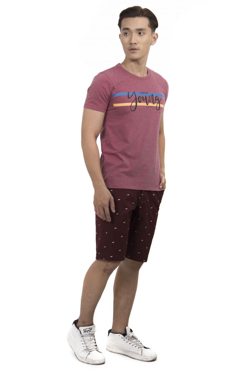 Quần Short nam Novelty đỏ đô in họa tiết NSKMINMCSR2000600